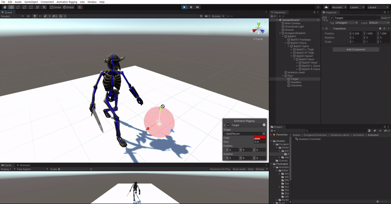 그리하여 등장한 개념이 바로 절차적 애니메이션(Procedural animation)으로 다양한 동작을 위해 실시간으로 애니메이션을 자동 생성하는 것이다. 쉬운 작업은 아니지만 유니티에선 애니메이션 리깅(Animation Rigging)이라는 기능을 도입해 보다 쉽게 구현하도록 도움을 주고 있다.