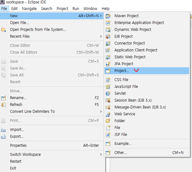 7. File -> New -> Project 클릭