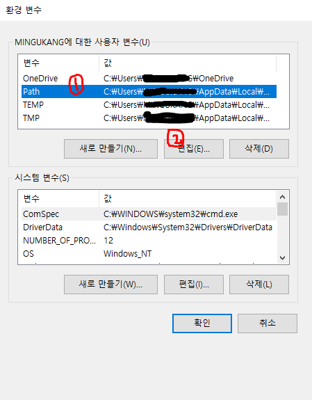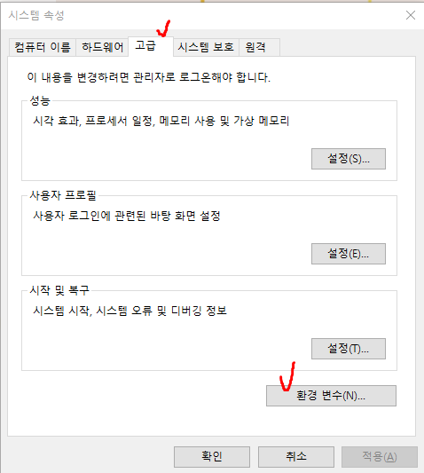 3. 고급 -> 환경 변수
