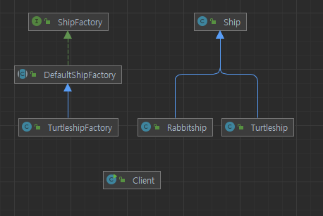 제품(Ship)도 마찬가지다 Ship을 인터페이스로 변경하고 중간에 추상 클래스를 두거나 바로 구현체를 둬서 구조를 변경, 확장할 수 있다.