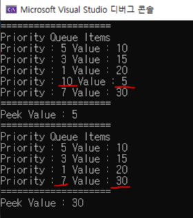 Console.WriteLine($"Dequeued Priority : {it.Priority} Value : {it.Value}");