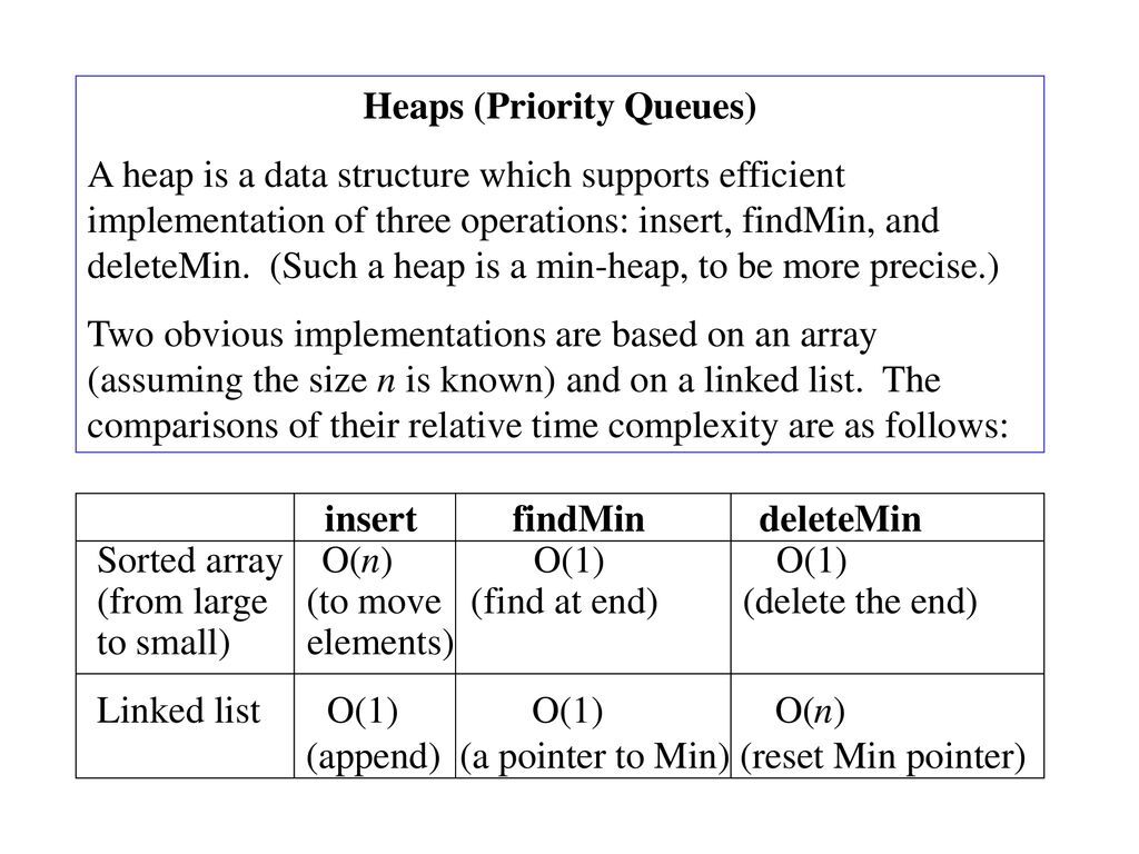 여기서 헷갈리면 안되는 게 우선순위 큐를 배열로 구현하는 것과 배열로 구현된 힙으로 우선순위 큐를 구현하는 것은 전혀 다르다. 헷갈릴 수 있으니 예제를 보자.
