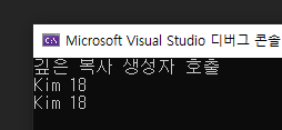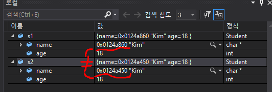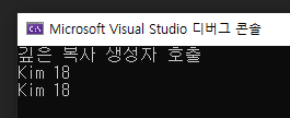 얕은 복사와 다르게 포인터 변수 name이 서로 다른 메모리 공간을 참조하고 있다.