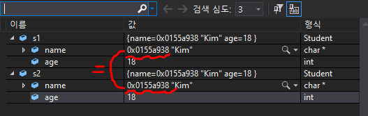 나아가 두 객체의 포인터 변수 name이 같은 메모리 공간을 참조하기에 어느 한 곳에서 값을 변경하면 변경된 값이 모두에게 반영된다.